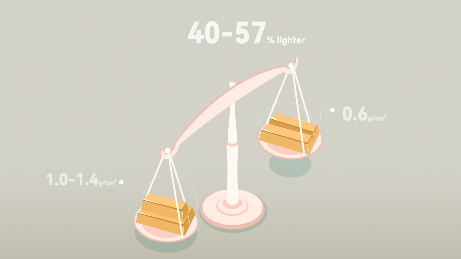 40-57% lighter than real leather
